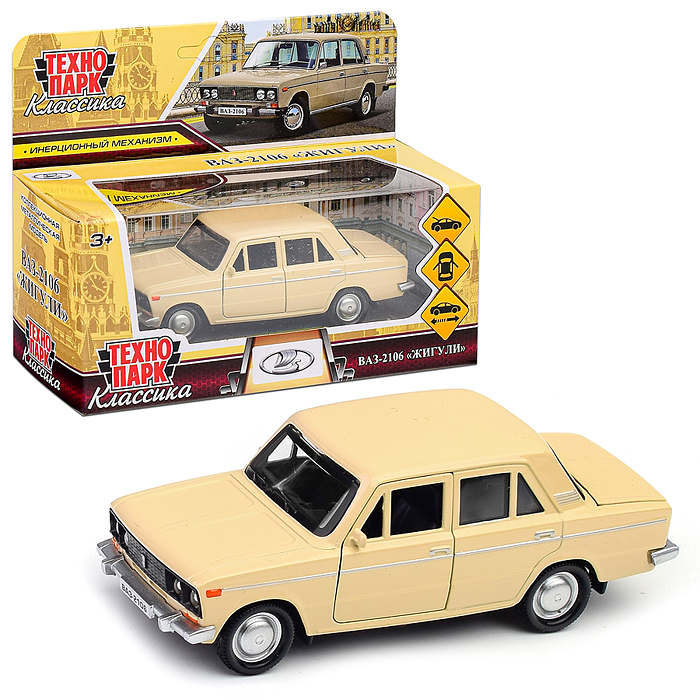 Машина металл ВАЗ-2106 Жигули 12 см, (двери, багаж, бежевый) инерц, в коробке