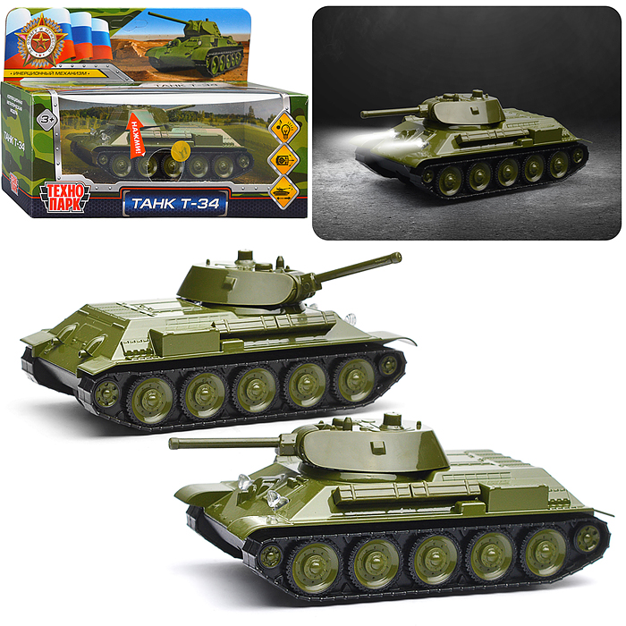 Машина металл свет-звук Уралвагонзавод Т-90 Танк Т-34 12 см, (зеленый)