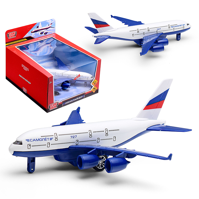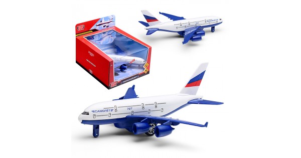 Машина металл свет-звук Авиалайнер 22см, подв. дет., инер., коробка