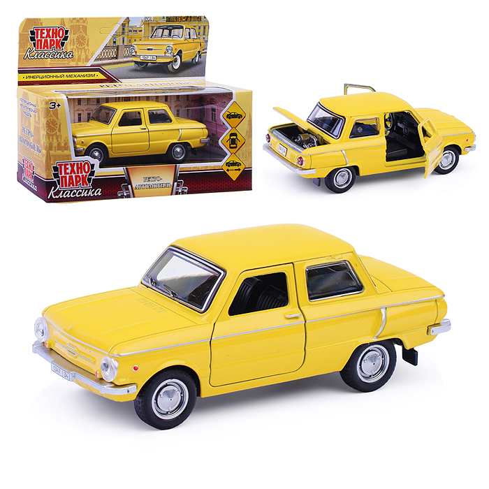 Машина металл ЗАЗ-968а "Запорожец" 12 см, (двер, желтый) в коробке