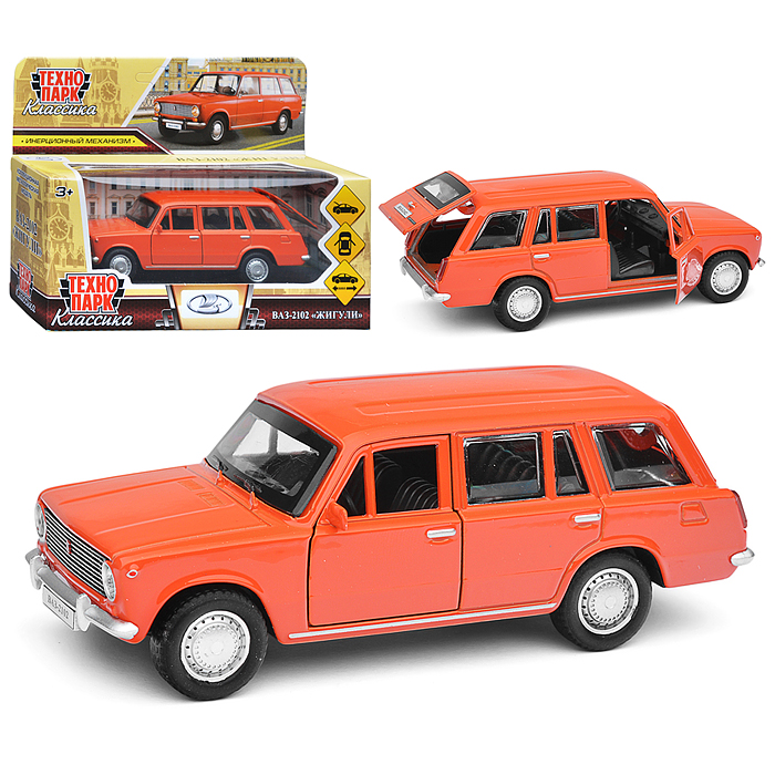 Машина металл ВАЗ-2102 12 см, (двери, багаж, оранжевый) инерц., в коробке
