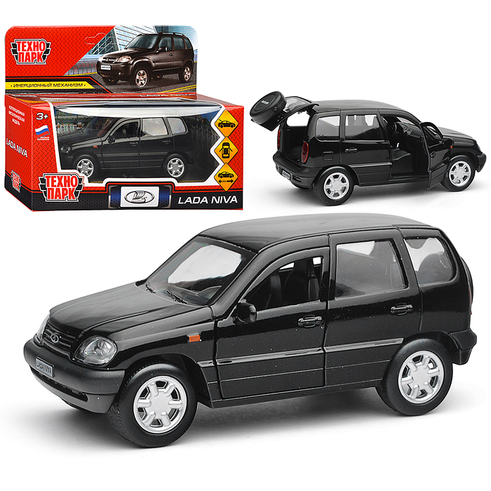 Машина металл LADA NIVA 12 см, (двери, багаж, черный) инерц., в коробке