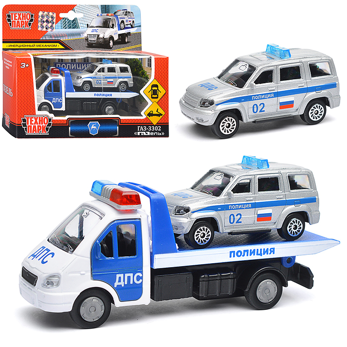 Набор из 2-х машин металл. Газель Эвакуатор 12,5см+ УАЗ Патриот 7,5см