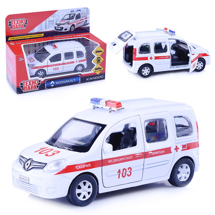 Машина металл Renault Kangoo Скорая, 12см, (открыв. двери) инерц., в коробке