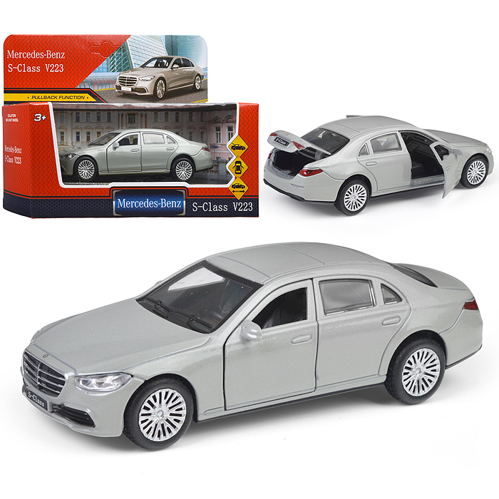 Машина металл Mercedes-Benz S-Class V223 12см, (дв, багаж, серебристый) инерц., в коробке