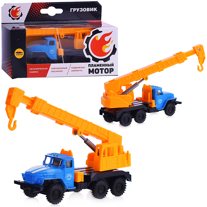 Грузовик металлический, инерционный, Подъемный кран, подвижные элементы