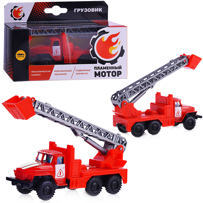 Грузовик металлический, инерционный, Пожарная машина, подвижные элементы