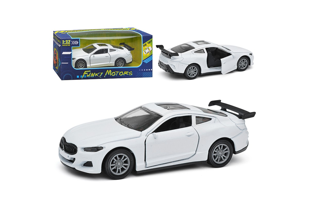 Белая инерционная машинка со спойлером die-cast,1:32, открывающиеся двери