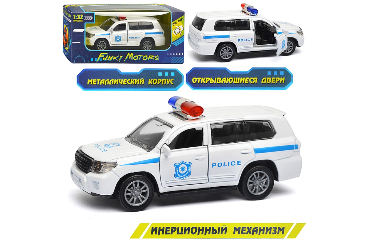 Белая инерционная служебная машинка Кроссовер die-cast,1:32, открывающиеся двери