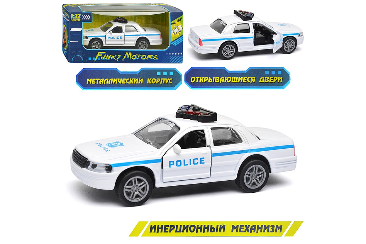 Белая инерционная служебная машинка Купе die-cast,1:32, открывающиеся двери