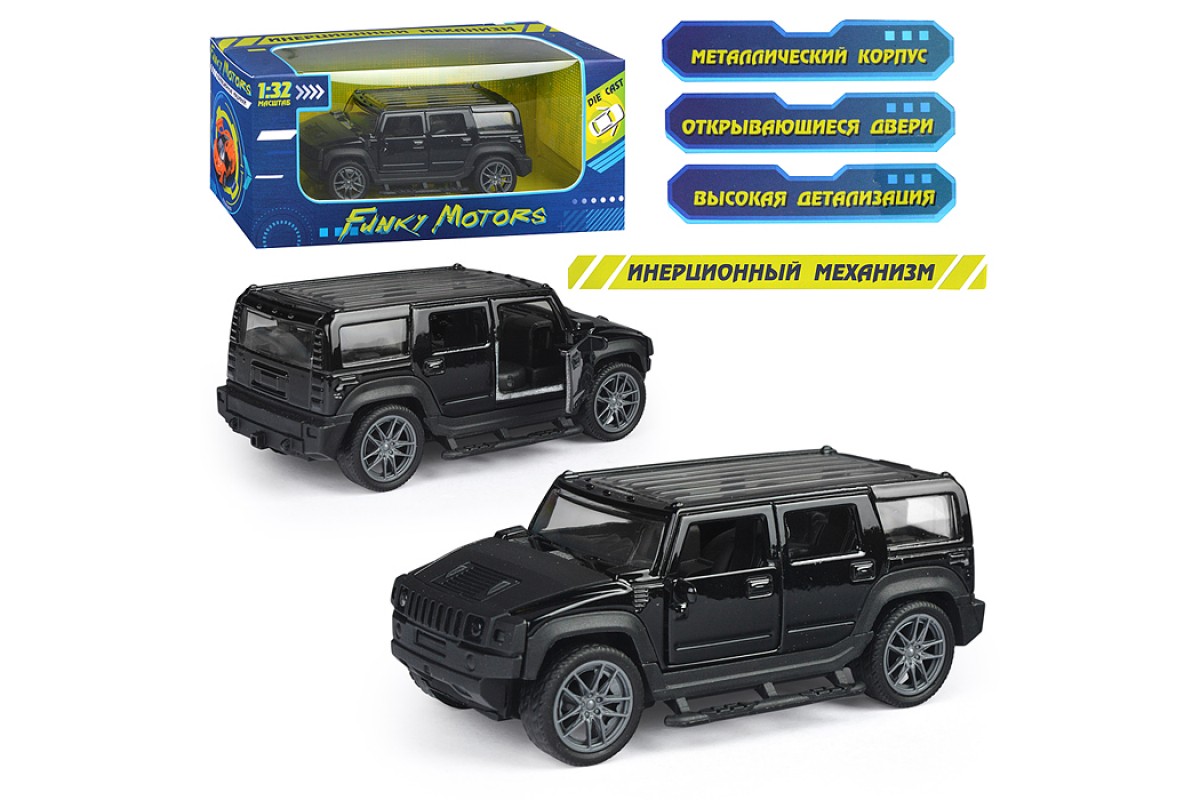 Чёрная инерционная машинка Сафари die-cast,1:32, открывающиеся двери
