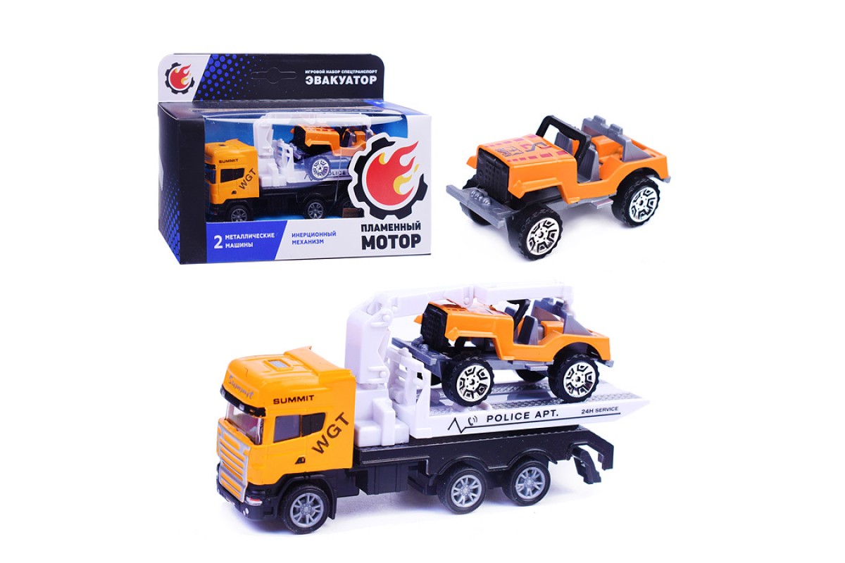 Эвакуатор инерц, металлическая кабина, металлическая мини машина, желтый