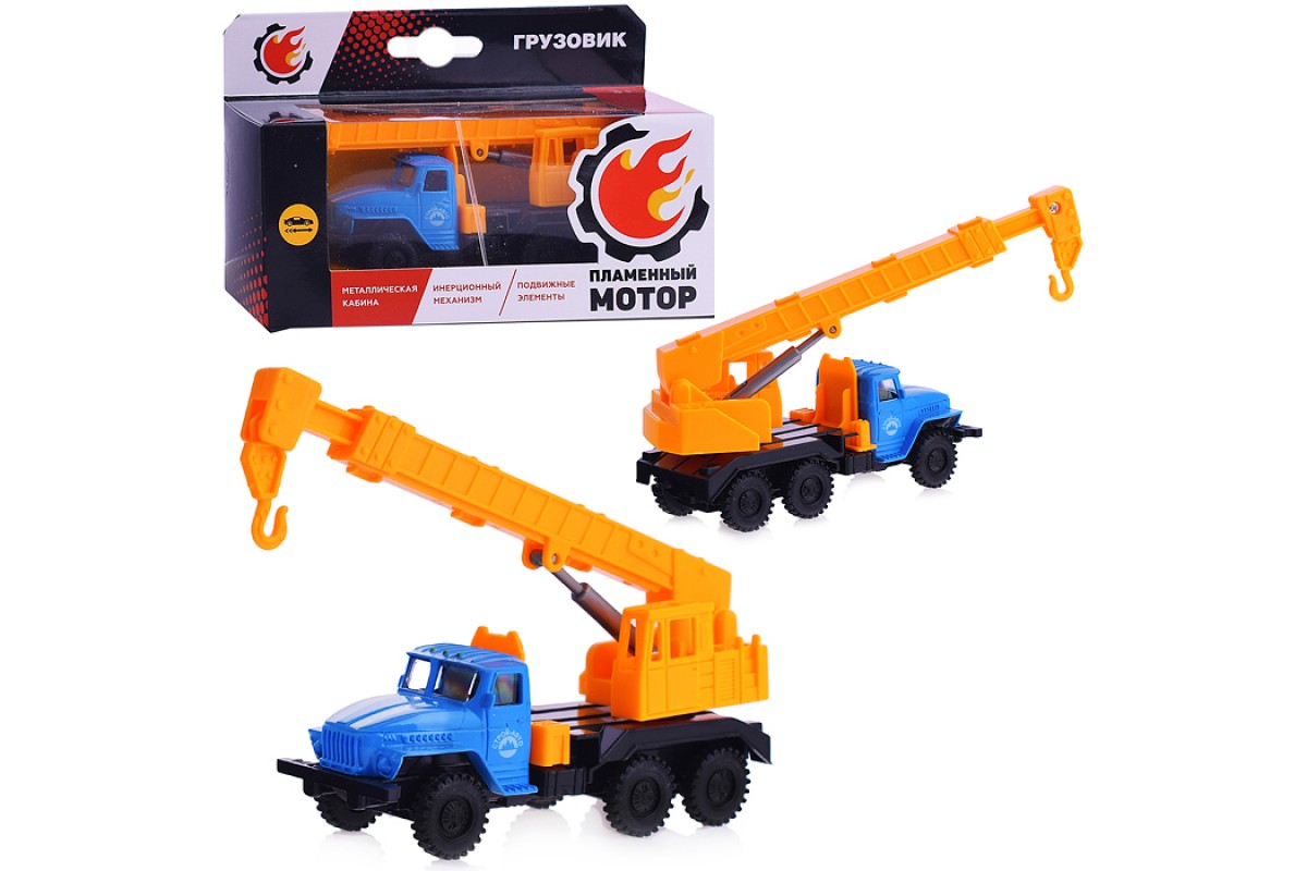 Грузовик металлический, инерционный, Подъемный кран, подвижные элементы