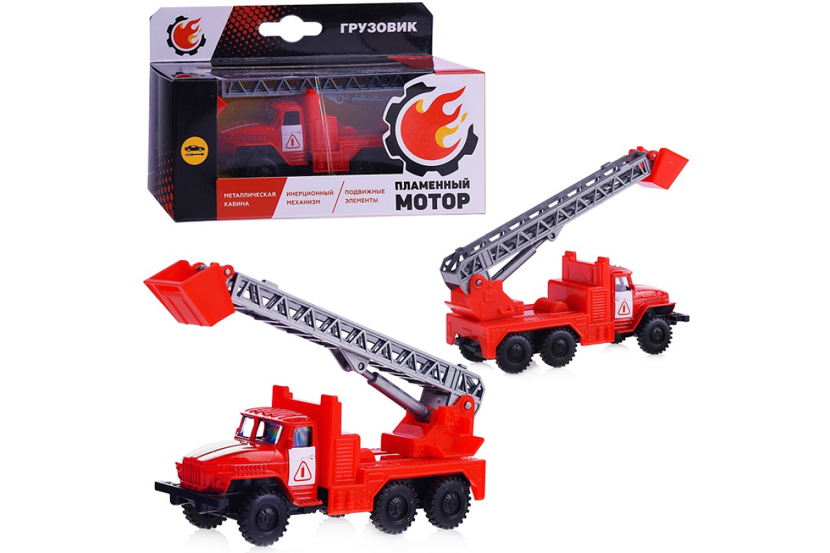 Грузовик металлический, инерционный, Пожарная машина, подвижные элементы