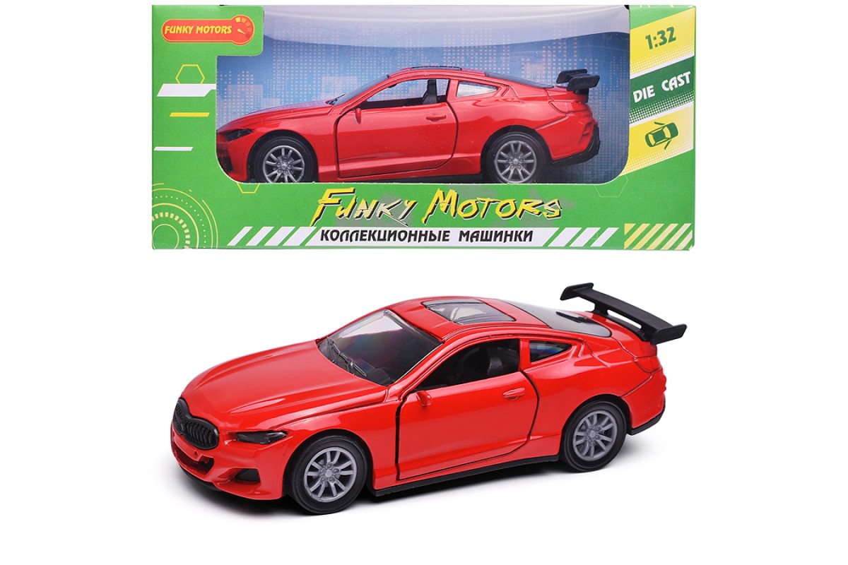 Красная инерционная машинка со спойлером die-cast,1:32, открывающиеся двери
