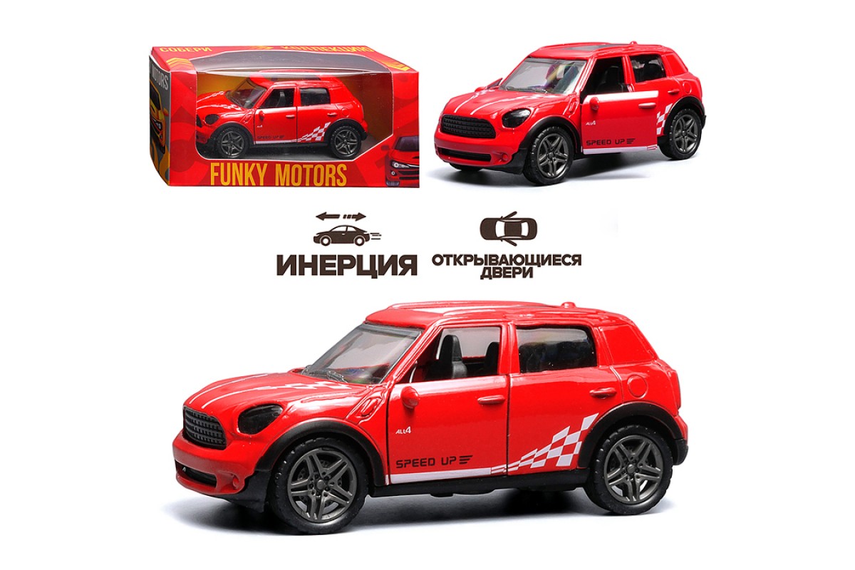 Красная с белым рисунком инерционная машинка die-cast , 1:32