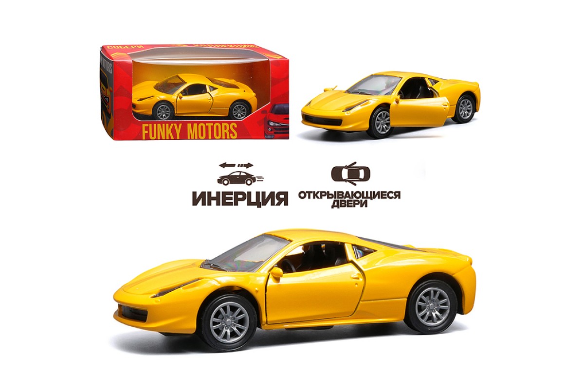 Жёлтая инерционная машинка вид В die-cast , 1:32