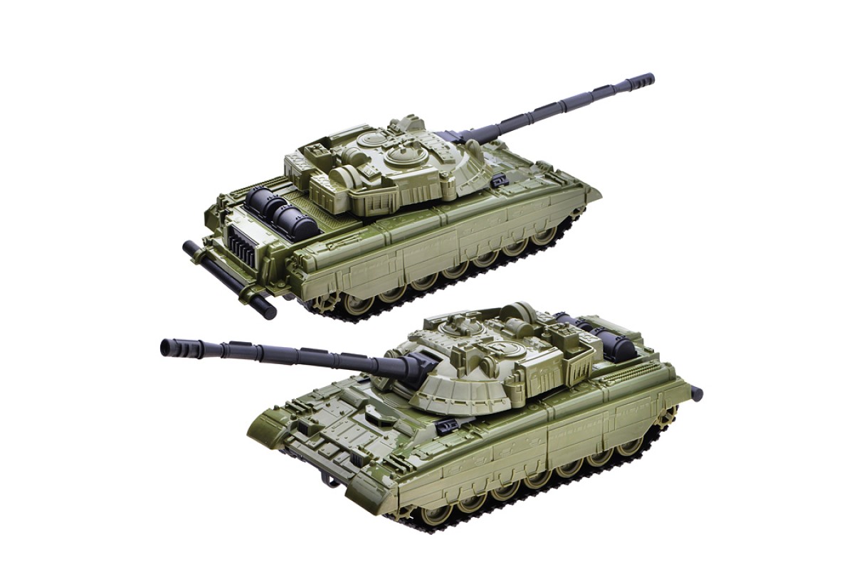 Классический танк, незаменимый в баталиях, оснащен вращающейся башней и пушкой, которая поднимается и опускается.