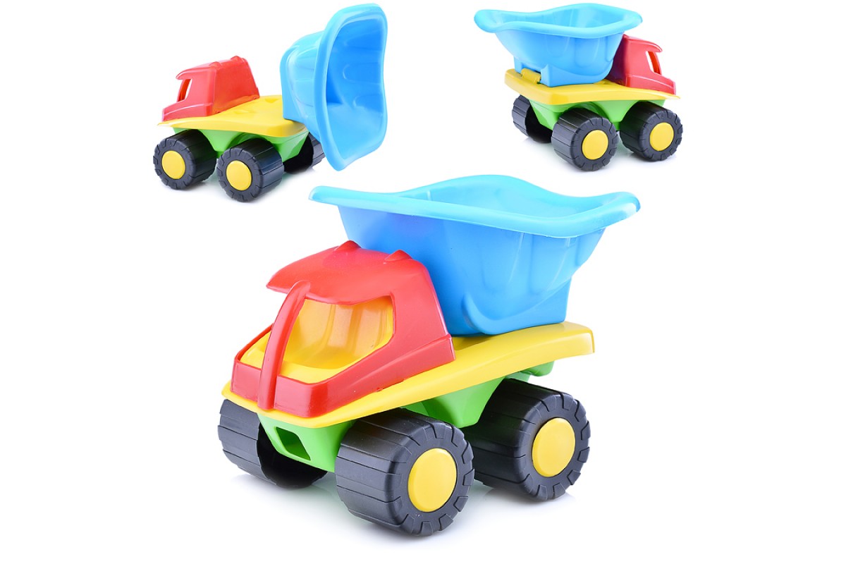 • Машинка не имеет острых углов, кузов самосвала поднимается и опускается.