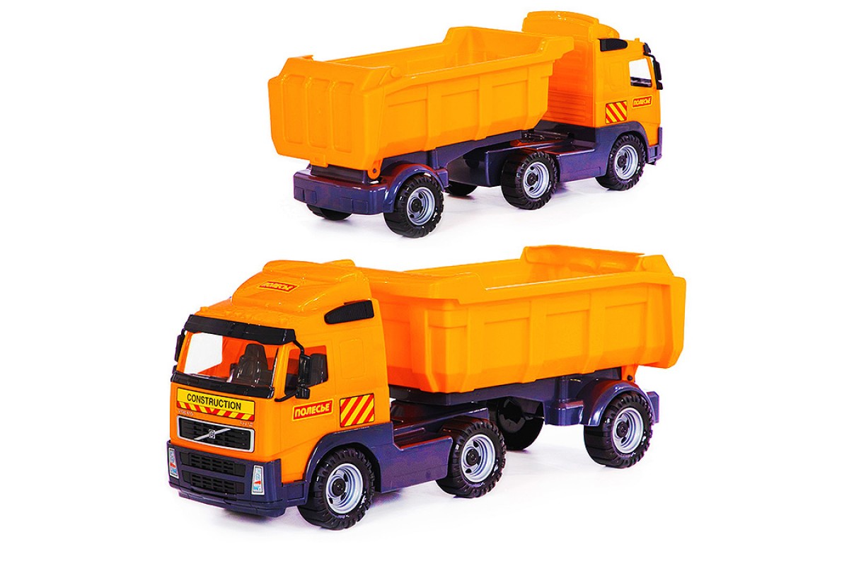• Полуприцеп автомобиля отсоединяется, поднимается кузов и открывается задний борт для разгрузки.