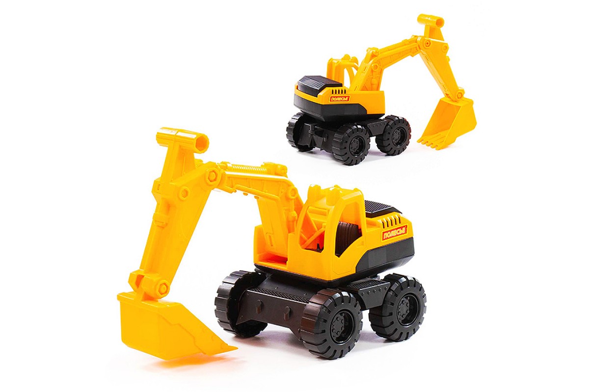 • В кабине игрушечной строительной техники имеются сиденье и панель управления.