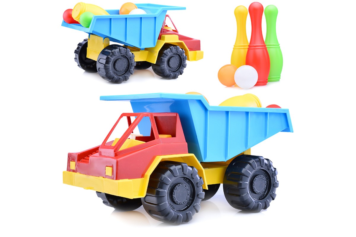 • В комплекте с грузовиком - набор: 3 кегли (27 см.) и 2 шара (7 см.).