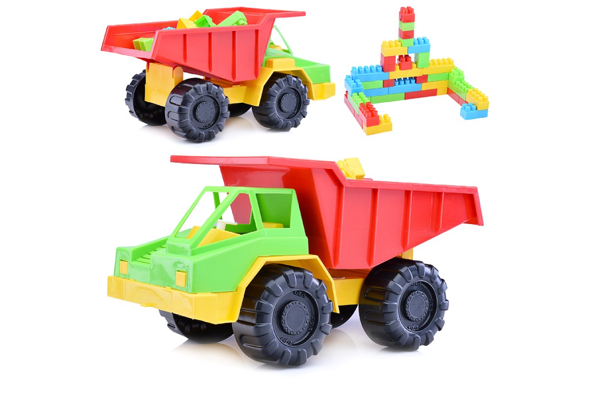 • В комплекте с грузовиком - комбинированный блочный конструктор (37 дет.).