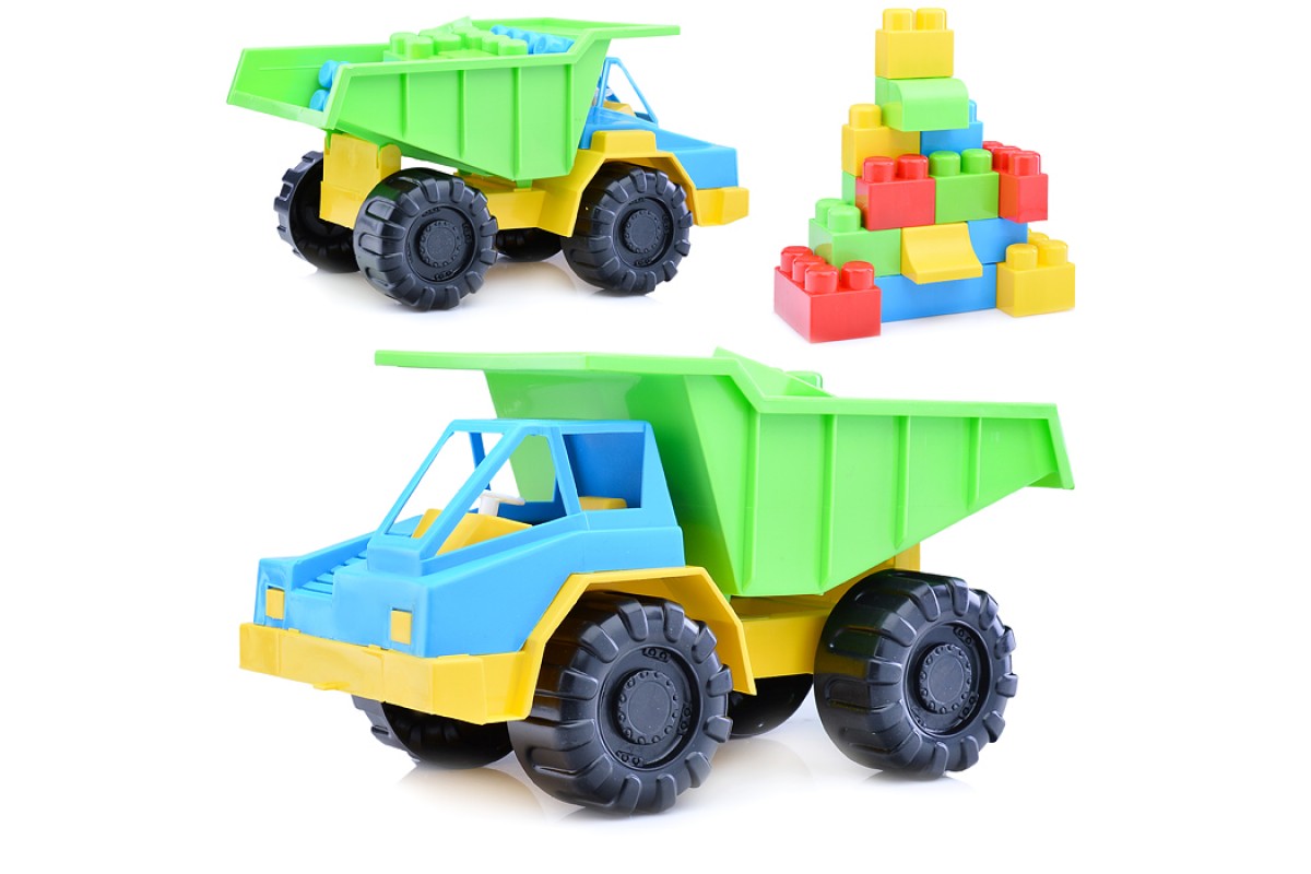 • В комплекте с грузовиком - комбинированный блочный конструктор с 14 крупными деталями.