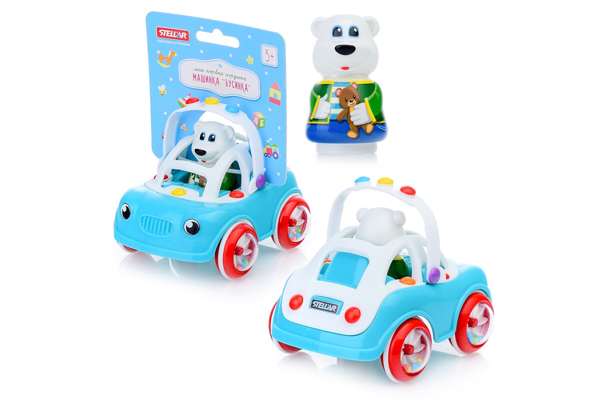 Такую машинку очень удобно брать маленькими ручками и под веселую народную мелодию катать по полу и переносить с места на место. В кабине «Бусинки» сидит забавный пассажир, которого можно легко достать, с ним игра станет еще интересней и веселей.