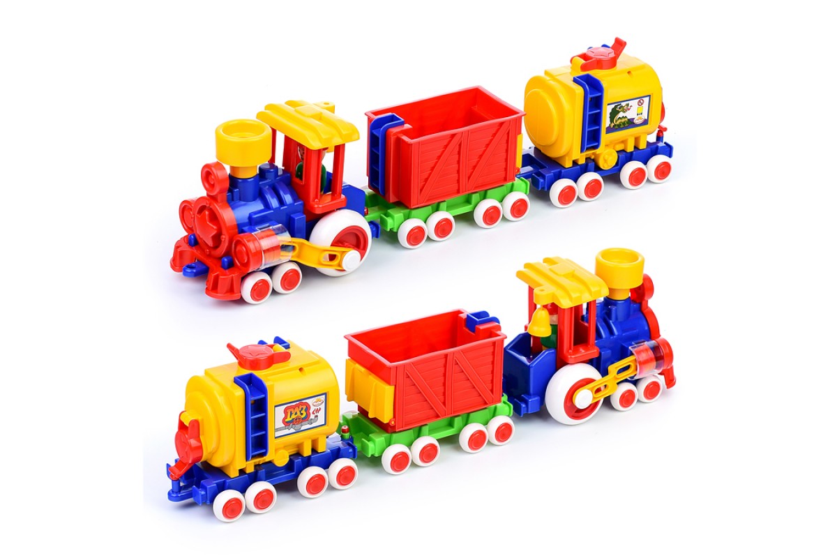 • Поршни двигаются в цилиндрах, человечек вытаскивается, вагончики отстегиваются.