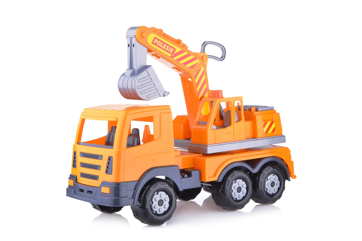 • Автомобиль-экскаватор имеет подвижные рукоять и ковш, причём движениями ковша ребёнок сможет управлять самостоятельно с помощью простого механизма. Рабочая кабина экскаваторщика может вращаться на 360 градусов, добавляя игре реалистичность и упрощая ребёнку управление ковшом.