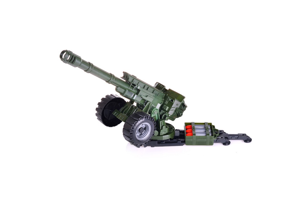 Основание – тренога складывается, а ствол орудия может подниматься и поворачиваться, так что при желании можно стрелять по мишеням. в комплект входит: пушка, ящик для хранения снарядов, 3 снаряда.