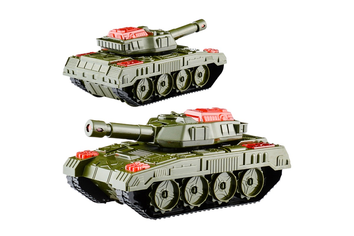 • На танке имеется имитация гусеничного механизма, игрушка приводится в движение благодаря скрытым колёсикам.