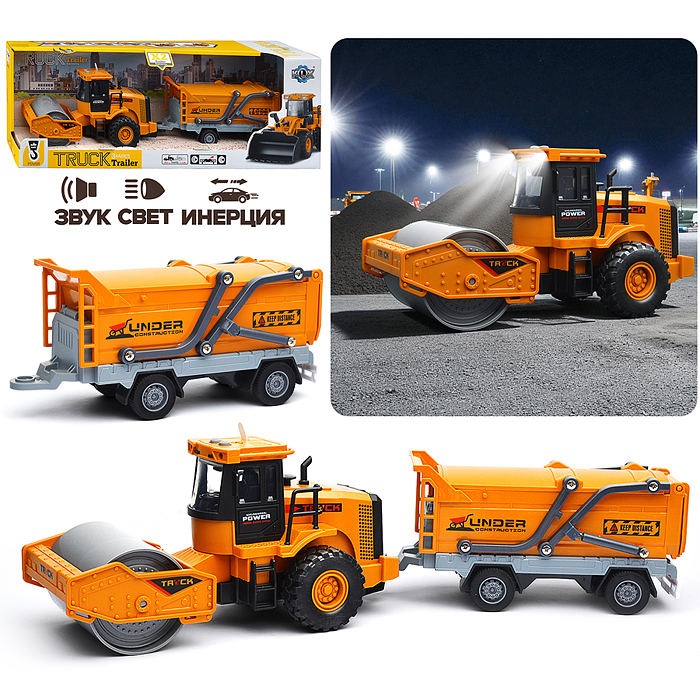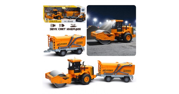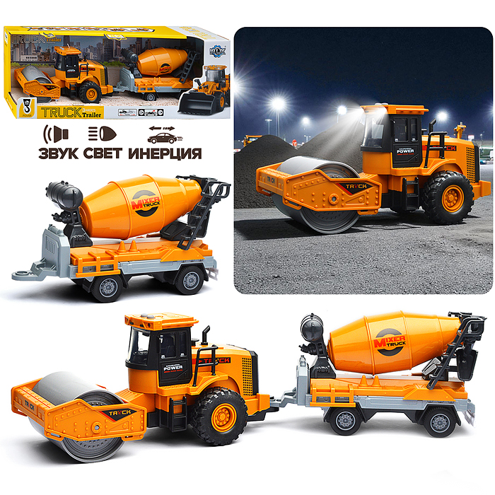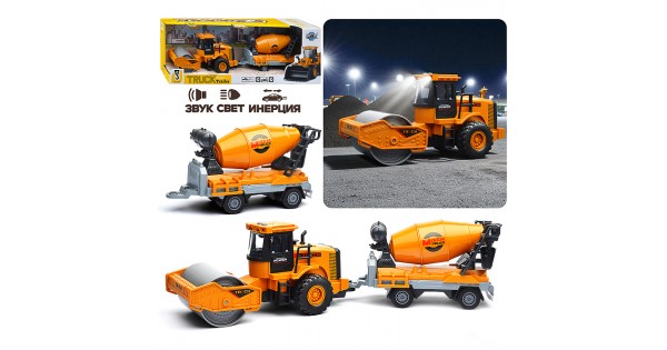 Машина "Асфальтоукладчик" с бетономешалкой (свет, звук) в коробке
