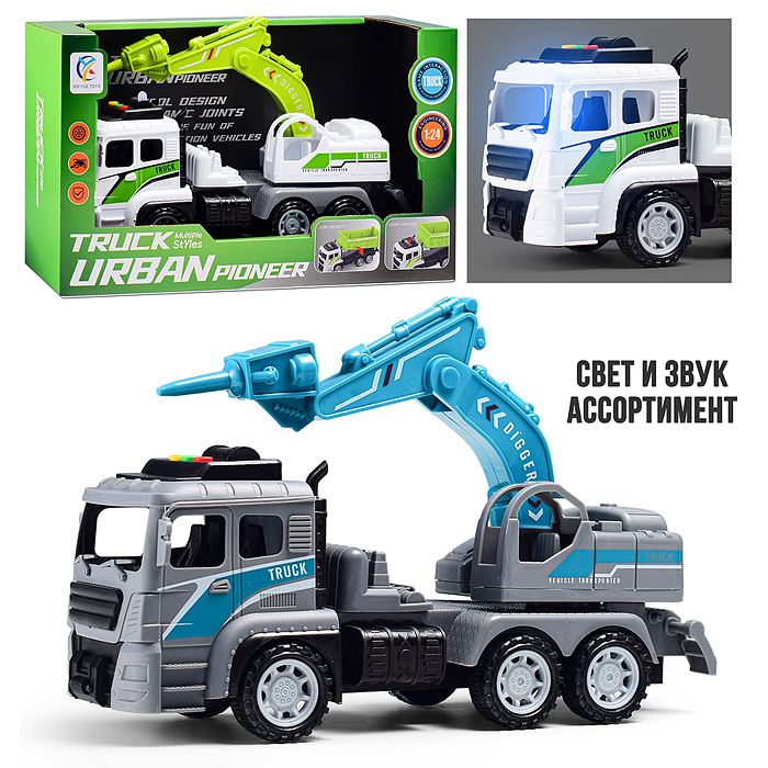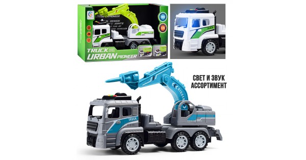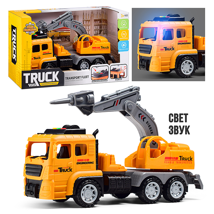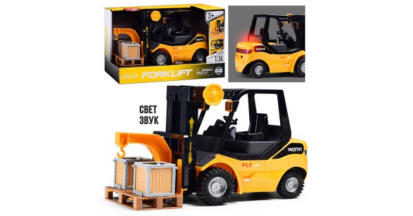 Погрузчик "Вилочный" с поддоном и бочками, 1:14 (свет,звук) в коробке