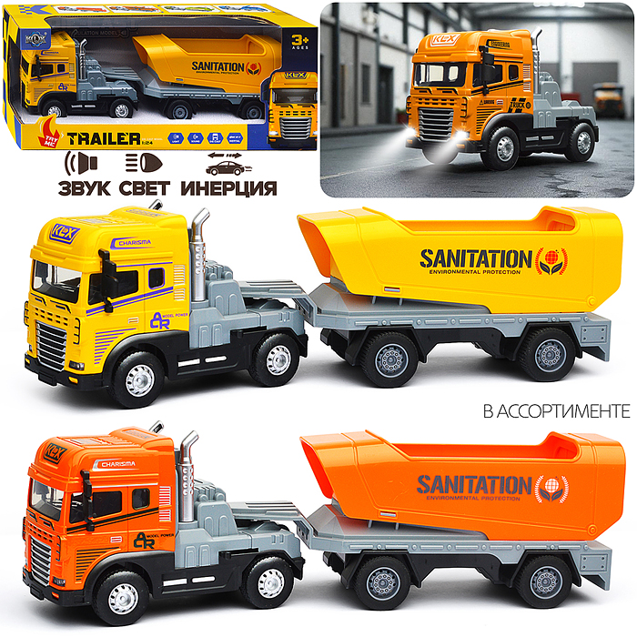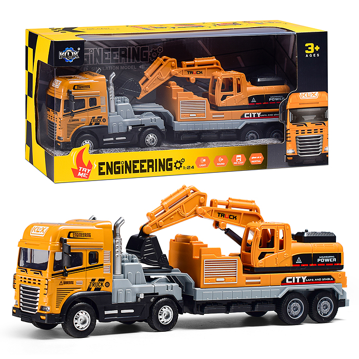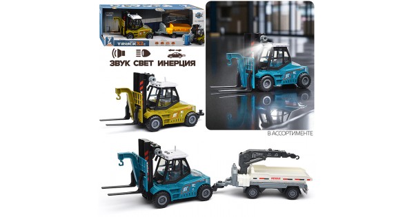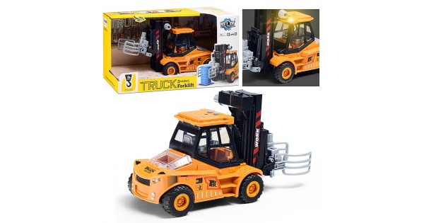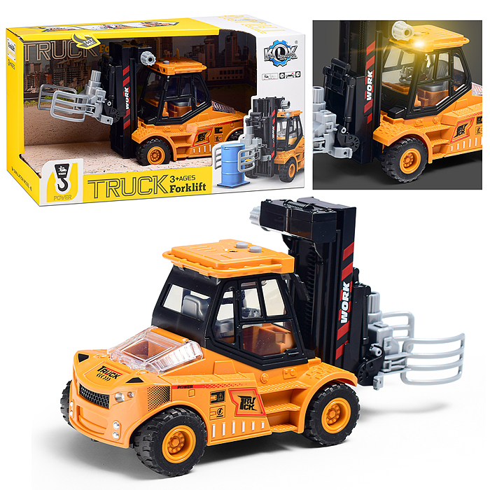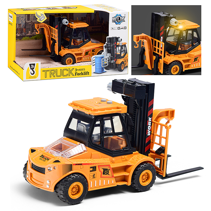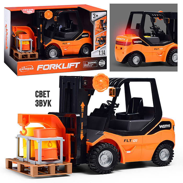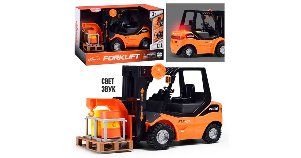 Погрузчик "Вилочный" с поддоном и бочками, 1:14 (свет,звук) в коробке