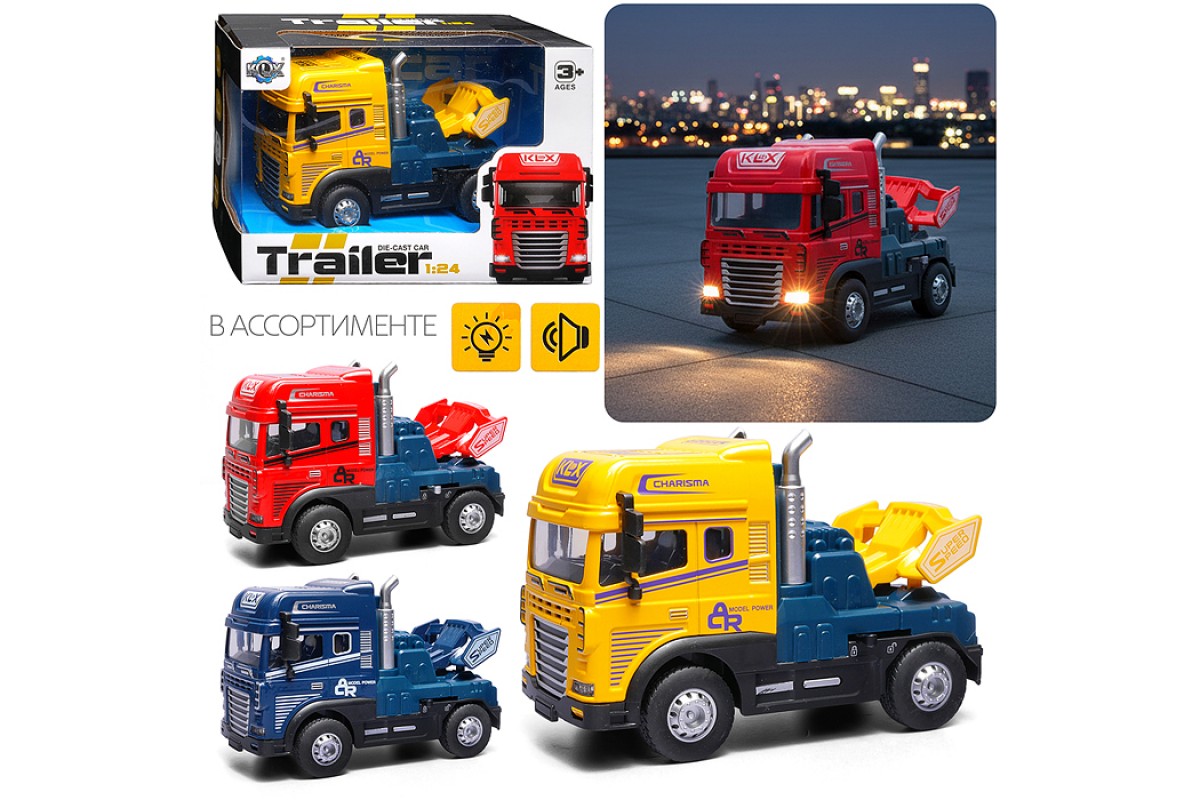 Машина "Трейлер" 1:24 (свет,звук) в коробке