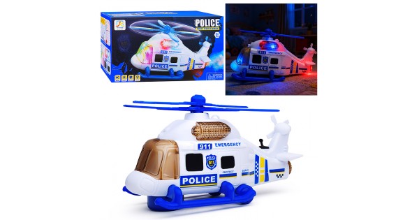 Модель пластик свет-звук Вертолет "Полиция" 20 см. (подв. дет) инерц., в коробке