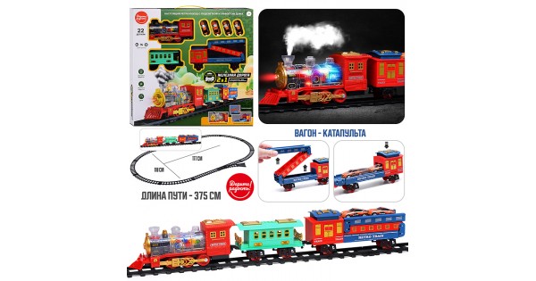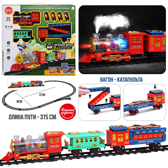 Железная дорога 2 в 1 "Ретро поезд" с подсветкой и эффектом дыма, в коробке
